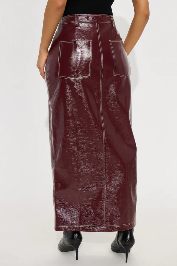 Set The Tone High Slit Patent Leather Maxi Skirt – Burgundy