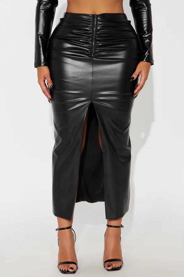 Show Me Faux Leather Maxi Skirt – Black